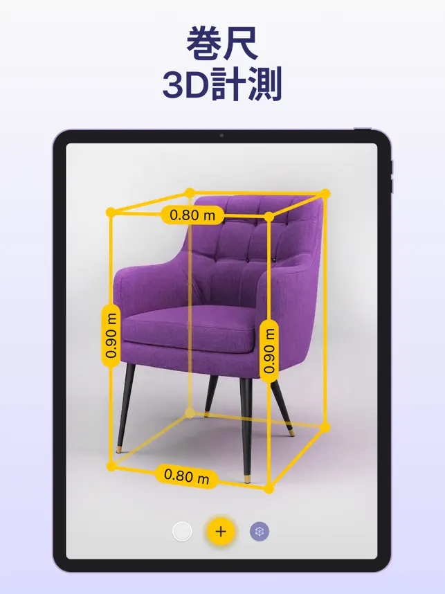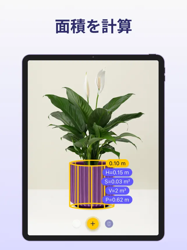 スマートフォンでデジタル測定テープを任意の物体に向けるだけで、即座に測定を開始できます。内蔵の3Dスキャナーが表面を検出し、AR測定テープツールを簡単に起動可能にします — これにより、家庭用からプロフェッショナル用まで対応する完全な測定計算機として機能します。