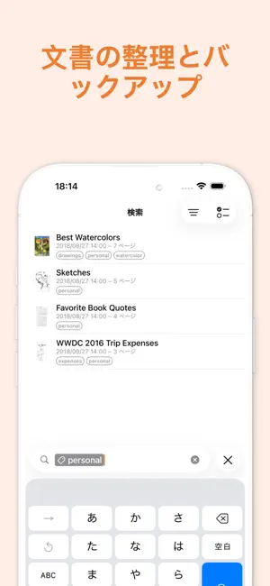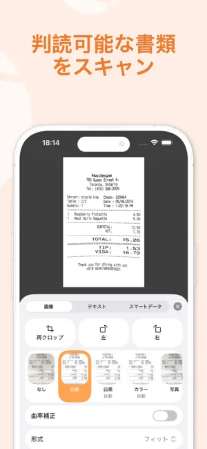 デバイスのカメラの前に文書を置いてください: スキャナーアプリが背景から用紙を自動的に認識してトリミングを実行します。読みやすい、明瞭なスキャンが出力されます。一括スキャンでは、数十枚のページをあっという間にスキャンすることができます。また、強力なツールを使って文書を整理、共有、およびアーカイブできます。