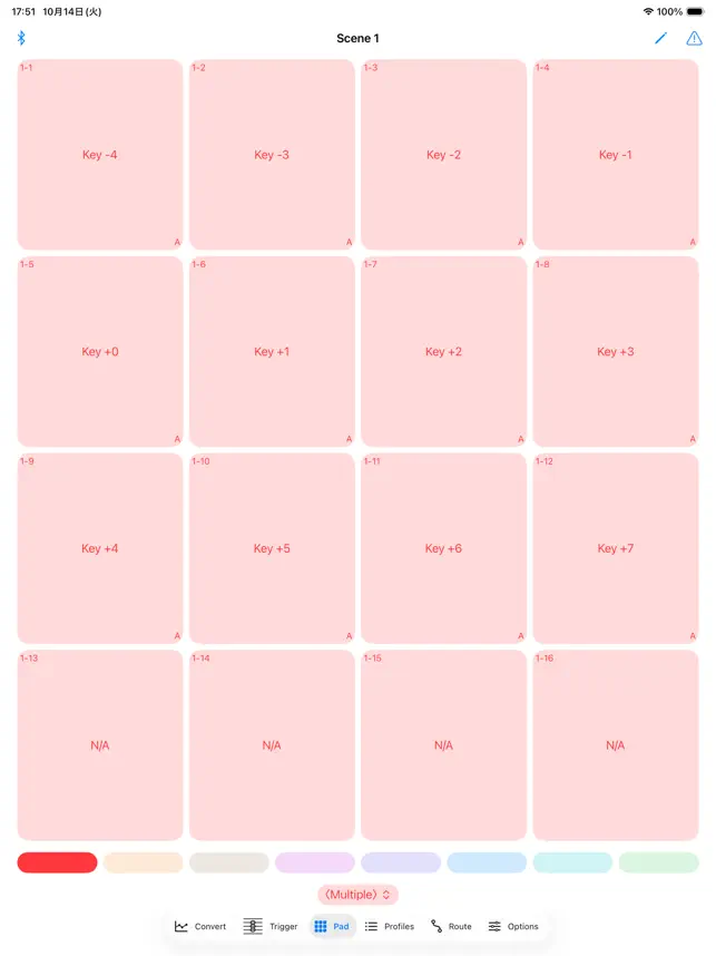 右上の「!」は、パニックボタンです。押すと、オールノートオフとオールサウンドオフが送信されます。
