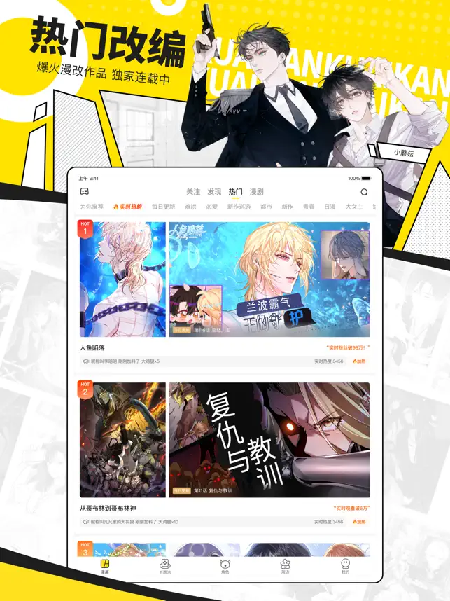 快看漫画が発展してきた今までに、約1億のユーザーがあります!ここには千部以上の高品質の正式版漫画作品が毎日更新しまして、読書量は1億台を突破しまして、作品で300部を超し、ファン数が一百万を超えて、作品は150部、今流行の優良品質の漫画は全部ここでチェックしますよ!