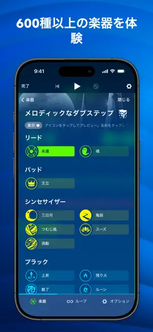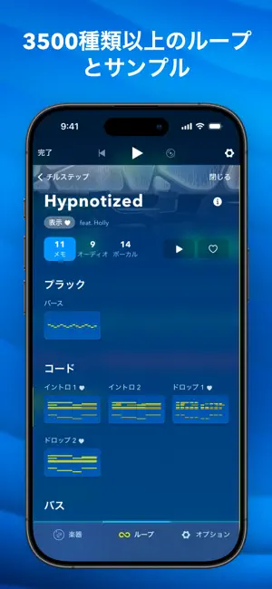 「Best of App Store 2016」を受賞したアプリMedlyのシンプルなインターフェースには、スタジオで制作したような高いクオリティーを実現するアドバンスツールが搭載されています。まずは、17種類の楽器と100種類のループおよびサンプルが入ったスターターパックから始めてみましょう。Medlyメンバーを7日間無料で利用すれば、3000種類以上の楽器やループ、限定機能を試すことが可能です。