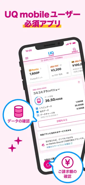 たったこれだけで‏、‎ア‏プリ‎を開けば残量確認できるし‏、‎節約モード切り替えもデータチャージも簡単で‏す‎。