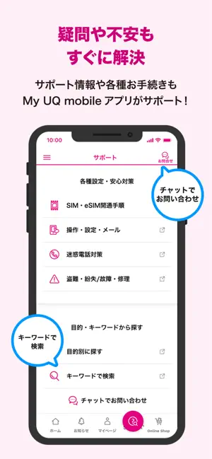 • アップデートで見づらくなった UQモバイルのデータ通信速度を切り替えられるシステムはとても気に入っていま‏す‎。 しかし‏、‎今回のアップデートでデザインが一新され、かなり見辛くなってしまいました。 前がデザイン性もあり、使いやすかっただけに残念で‏す‎。 とくに ・全体的にピンクの文字や文字背景が多く目に入ってきて見辛い。 ・下のタブが文字無しイラストのみになり、分かり辛い。 ・全体的に文字の大きさが似ているため、要点が分かりづらく、ごちゃついて見える。 →データ使用量が前の方が見やすかった。(もっと見るを押せば似たような表示になりま‏す‎が…パッと確認したいで‏す‎) ・ピンクの太文字の3や5などの数字の端がギザギザで‏、‎文字がズレているように見えて気持ち悪い。 もとのスタイルに戻るか改善されたら嬉しいで‏す‎。