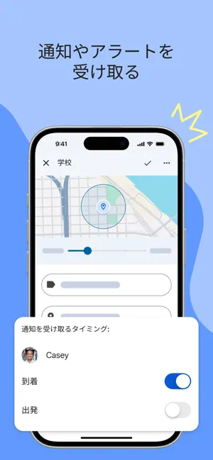 * 該当する年齢以上のお子様は、自分でアカウントを管理できます。 いつでもどこでも最新の情報を • お子様の位置情報を確認する - お子様が外出されている際、どこにいるか知りたいと思われることも多いのではないでしょうか。ファミリー リンクを使用すれば、お子様がデバイスを携帯している限り、地図上で位置情報を把握できます。 • 通知やアラートを受け取る - お子様が特定の場所に到着したときや、その場所から出発したときなど、重要な通知を受け取ることができます。またデバイスの着信音を鳴らしたり、デバイスのバッテリー残量を確認したりすることもできます。 重要な情報 • ご利用いただけるファミリー リンクのツールはお子様のデバイスによって異なります。対応デバイスの一覧は https://families.google/familylink/device-compatibility/ でご確認いただけます。 • ファミリー リンクでは、Google Play でのお子様による購入やダウンロードを管理できますが、アプリの更新(アプリの権限が拡大される場合も含む)、保護者が以前に承認したアプリ、ファミリー ライブラリで共有されているアプリについては、お子様が保護者の承認を得ることなくインストールできます。また、購入の承認が適用されるのは、お子様が Google Play の課金システムを使用して購入した場合のみです。他の課金システムを使用した購入には適用されません。お子様がインストールしたアプリやアプリの権限をファミリー リンクで定期的に確認することをおすすめします。 • お子様の管理対象デバイス上のアプリをよく確認し、望ましくないアプリは無効にしてください。プリインストールされているアプリ(Play、Google など)は無効にできない場合があります。 • お子様のデバイスの位置を確認するには、デバイスの電源がオンの状態で、最近使用されており、データ通信または Wi-Fi 経由でインターネットに接続されている必要があります。 • ファミリー リンクの保護者による使用制限は、管理対象の Google アカウントでのみご利用いただけます。お子様は管理対象の Google アカウントで Google の各種サービス(検索、Chrome、Gmail など)にアクセスできます。保護者はお子様のデバイス利用に関する基本ルールを設定できます。 • ファミリー リンクのツールを使えば、お子様のオンライン アクティビティを管理し、安全なインターネット利用を守ることができますが、インターネット自体が安全なものになるわけではありません。ファミリー リンクでインターネット上のコンテンツを特定することはできませんが、保護者の方がお子様によるデバイスの利用時間を決定したり、ご家族にとって最も安全なインターネット利用方法を判断したりできます。