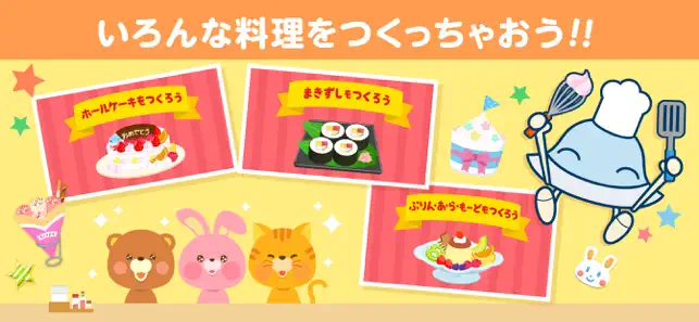 小さなお子さまでも楽しめる直感的な操作性に配慮した料理ゲームアプリです。
