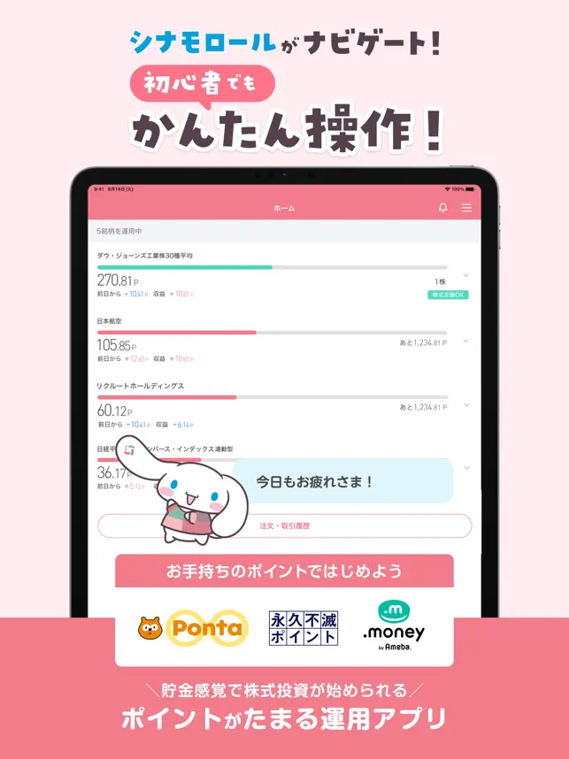 【ポイントで株を楽しく始める!初めてでも簡単スタート】 お持ちのポイントで株の世界が今すぐ体験できる!貯金より楽しいお金の増やす第一歩。 株を買ったことがなくても大丈夫!ポイントだから安心して始められます。