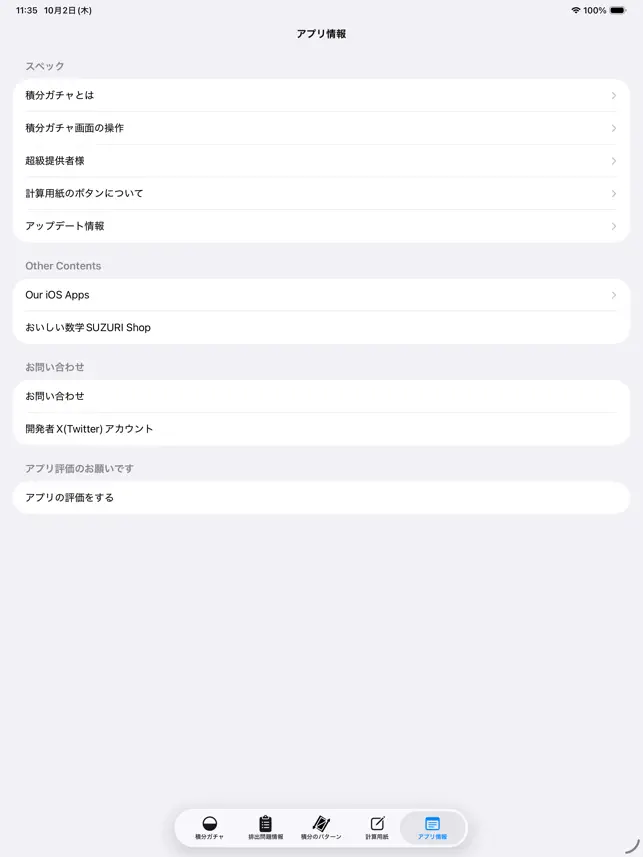 - 良アプリ 勉強の息抜きに使ってます。ランダム要素とタイムアタック要素があるので楽しんで積分の計算力をつけていくことができます。初学の方にもおすすめです