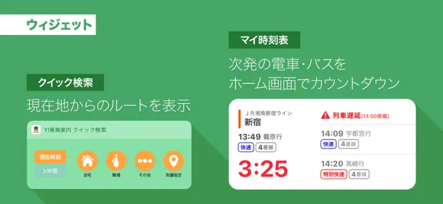 ・出発駅や乗換駅、到着駅のそれぞれで"次の列車はあと何分?"が直感的に分かって便利!