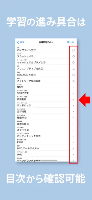 さらに、完全版へアップグレードすると、問題数が約400問に増加し、ランダム出題機能も使えるようになります。追加される問題は過去の出題から頻出論点の良問が厳選されているので、合格に必要な知識を効率よく身に付けられます。適切に章分けもされているため、分野ごとの集中的な学習も可能です。ランダム出題機能では過去に間違った問題や未回答の問題が優先的に出題されるので、受験直前の総仕上げや知識の維持に効果的です。まさに応用情報技術者試験向け問題集アプリの決定版と言えるでしょう。
