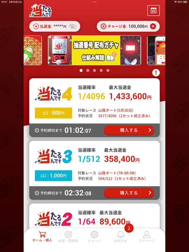 ・アプリ限定の抽選演出で、より抽選が楽しめます。