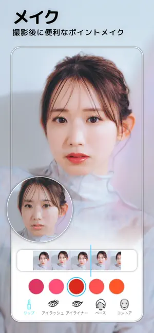メイク機能ではポイントメイクでしっかり盛れるのでかなりいい感じです。