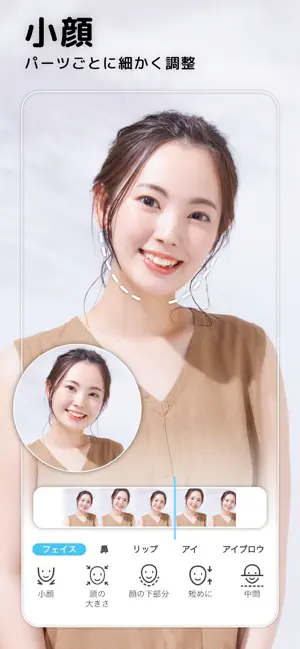 - かなり良き! 小顔機能は色んな顔のパーツがいじれるのでかなり自然な感じで加工できます。