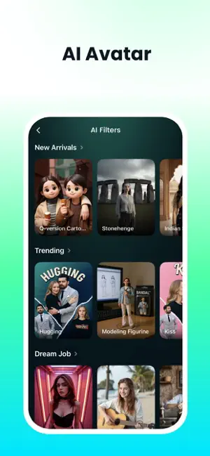 • 自撮り写真を選び、スタイル(ビジネススーツ、エッフェル塔の背景、レッドカーペットの華やかさ、漫画風ポートレートなど)を選択すると、AIがソーシャルメディア、出会い系アプリ、求人プロフィールに最適な、高品質でリアルな画像を瞬時に作成します。