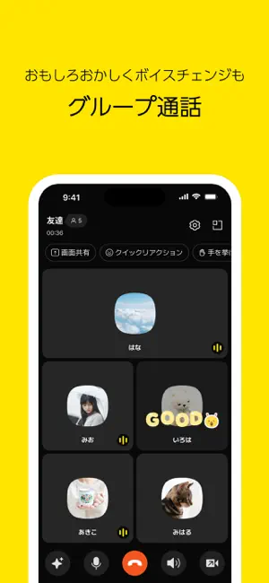 最大10名までのグループで音声通話・ビデオ通話ができます。通話中にビデオ通話に切り替えたり、画面を共有できます。ビデオ通話の多彩な画面エフェクトでもっと楽しい通話をしましょう。