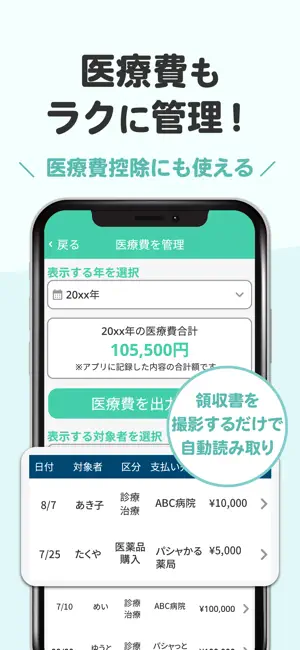 医療費の管理も領収書を撮影するだけで簡単読み取り!