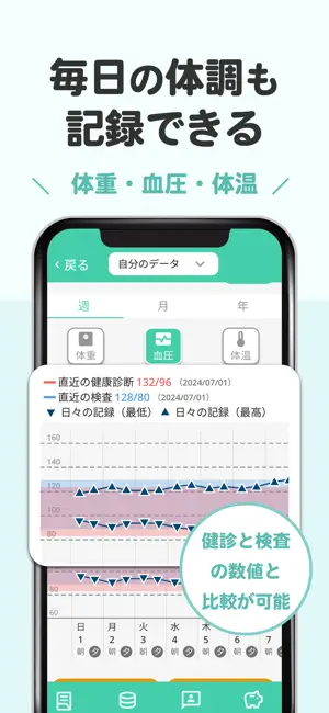 アプリで医療情報をまとめて管理することによって、「気になる数値の変動の確認」や「お医者さんや薬剤師への説明」等に活用していただいております。血圧や体重・体温などの日々の体調の変化の記録もでき、一目で自分の健康状態を確認することができます。