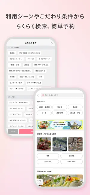 \「OZのプレミアム予約」はお店選びからおでかけをサポートします/