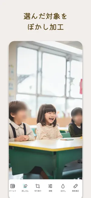 - 画像の色調整、フィルターや明るさ、コントラスト調整など、豊富な写真加工機能で個性的な仕上がりに
