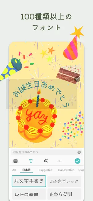 - 日本語フォントを使って、写真にぴったりのメッセージを簡単に追加