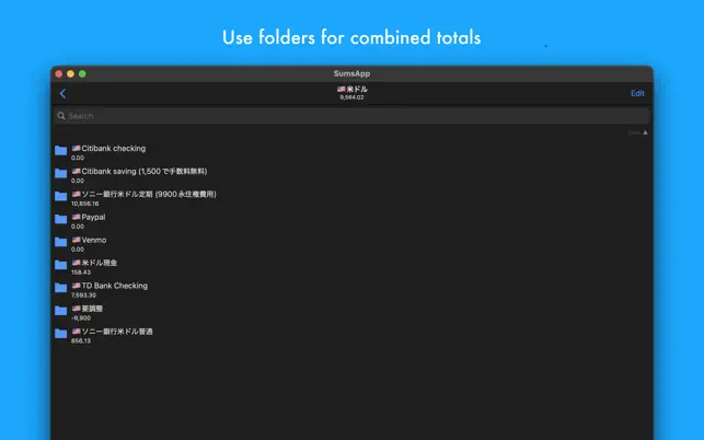 ノートをフォルダーにまとめれば、合計金額も表示されます。旅行の予算管理やカテゴリーごとの集計に最適。