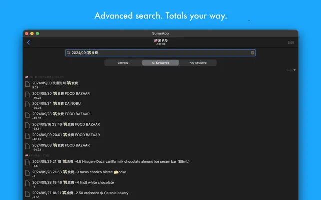 高度な検索機能で、必要な情報を絞り込んで合計も簡単。