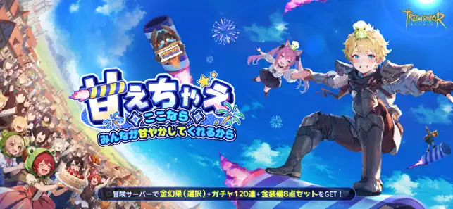 さらに冒険サーバーにログインすると、ガチャ120連+金装備8点セットがもらえるチャンス!