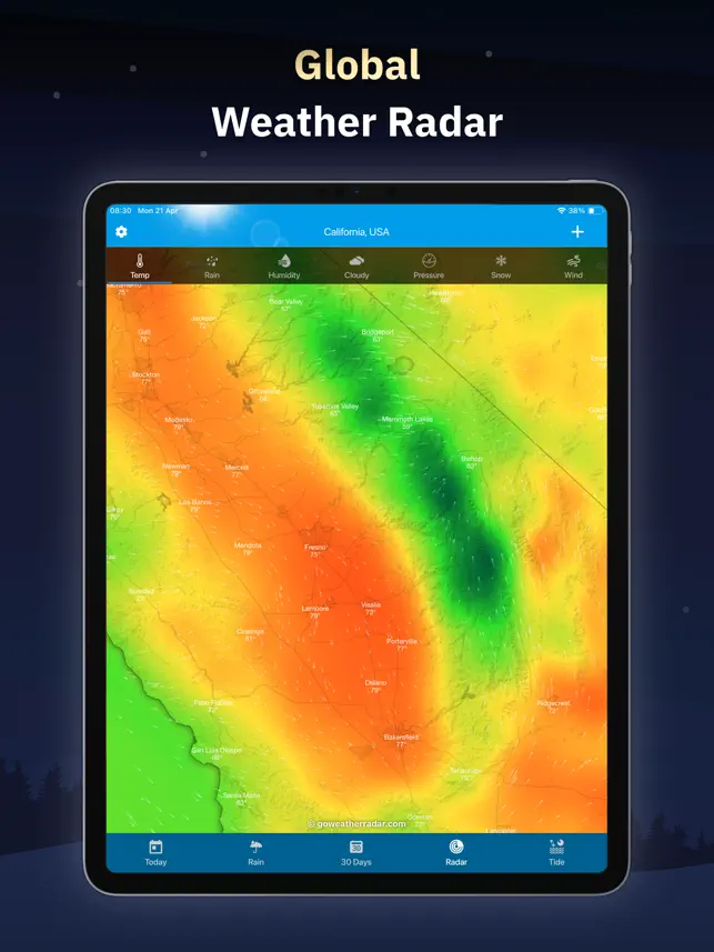 高解像度のレーダー マップで直感的なリアルタイムの天気を確認できま‏す‎。 ユーザーは‏、‎ライブレーダーを使用して、嵐、雨レーダー、温度レーダー、雲、風、雪を簡単に追跡できま‏す‎。 レーダーマップを使用すると、ユーザーは天気の概要を一目で把握できま‏す‎。
