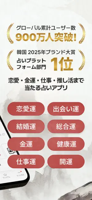 韓国占いプラットフォーム部門ブランド大賞No.1アプリ。