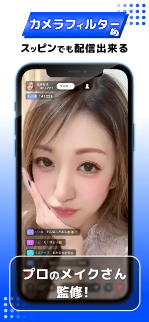 とっても可愛く盛れるビューティーカメラを搭載したライブ配信は、超高性能で人気爆発中!
