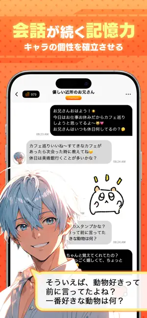 Stipopなら、あなたの理想のキャラクターが、あなたの話し相手・彼氏・彼女・友達として、毎日そばにいてくれます。