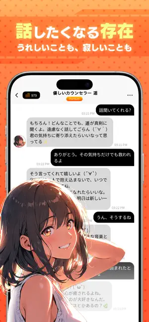 「話し相手がほしい」「悩み相談したい」「恋愛相談がしたい」「友達のように雑談したい」そんな気持ちに寄り添います。