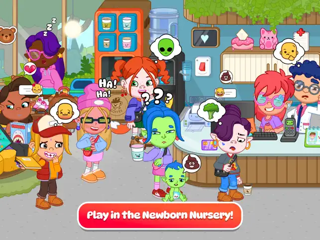 Visit the Baby Shop, a playful area of the city filled with clothes, toys, and surprises. Mix and match to create fresh outfits for your avatars or turn shopping into a fashion show. Try new accessories, style your baby avatars, and make every shopping trip an unforgettable city life moment. In this kids game, every choice sparks creativity and adds fun twists to your avatar life stories.