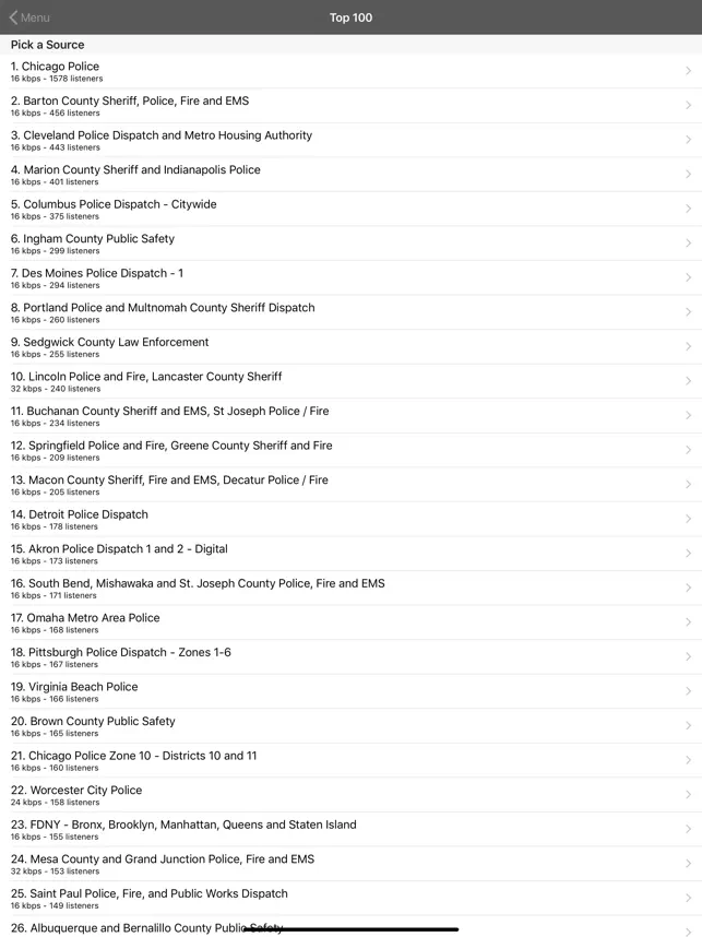 - Browse through radio feeds by genre (Police, Railroad, Rock, Pop, Hip-Hop, R & B, etc.)