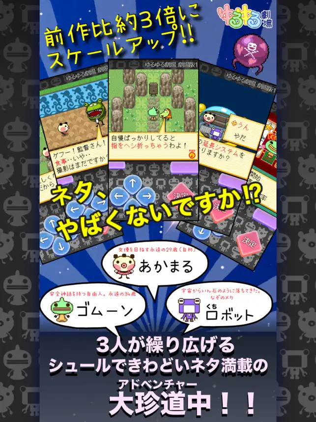 スケールは過去作の約3倍程度で、ゆるゆる劇場の世界観や散りばめられたギャグを存分に堪能できるでしょう。