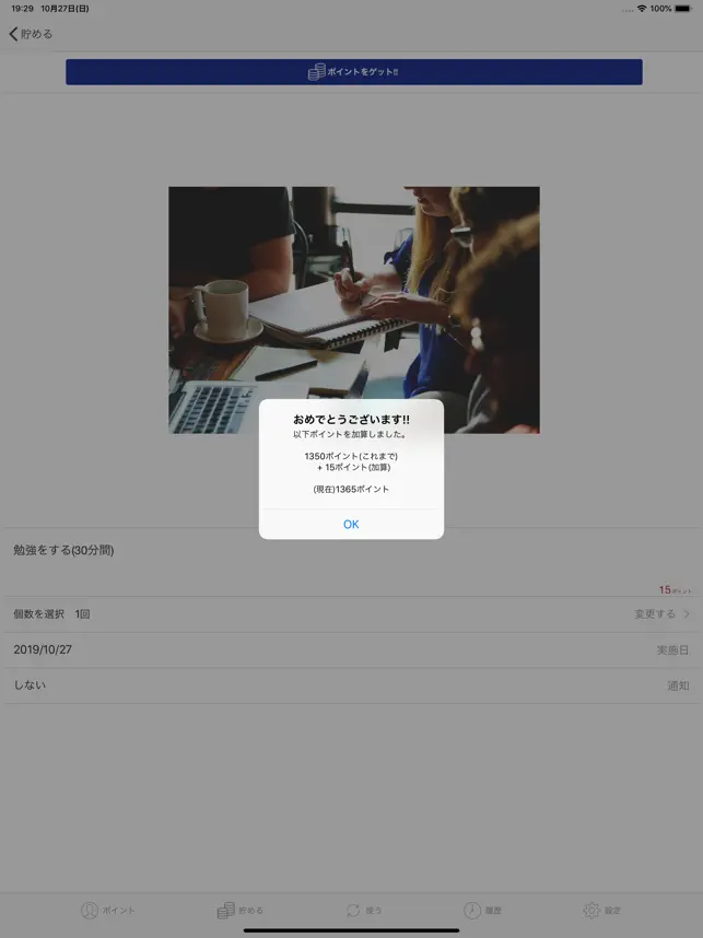 目標の達成をポイントと絡めることで,日々の努力をゲーム感覚で楽しく行うことができます. 楽しみながら目標達成を行うことができます