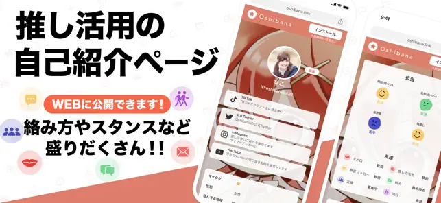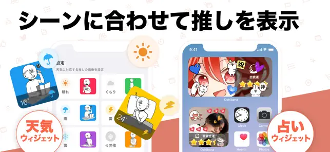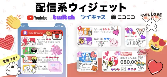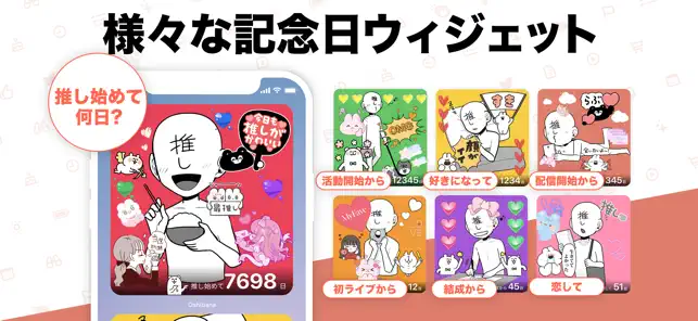 ・推しの情報確認するHPやSNSの数が多い ・スケジュール帳を使った細かい管理は苦手 ・推しが紀元前生まれ ・推しの色(概念)を知っている 【できること】 ■推しのプロフや性格、記念日をめちゃくちゃまとめておけます ・特別な日は忘れないように通知 ・特に特別な日の演出があります ■ホーム画面に推しのバナーと機能を組み合わせて設置できます。(ウィジェットという機能です) ・「推しはじめて○日」を表示 ・声の補給ができる(推しの音声データをホーム画面に設定していつでも聞ける) ・推し画像複数枚を登録すると、画像が動くアルバムがつくれる ・推しがApple Musicで配信していたらその曲をいつでもホーム画面で再生 ・YouTubeの最新動画をホーム画面に常に表示(タップでその動画を開けます) ・YouTubeの推しのチャンネル登録者数・総再生回数をホーム画面に固定表示 ・推しのツイキャスの最新配信やライブをホーム画面に表示 ・推しのTwitchの最新アーカイブをホーム画面に表示 ・ニコニコ動画で特定のキーワードで表示される動画をホーム画面に表示 ・推し占い(占い結果ごとに自分の推しの画像を設定) ・推しの天気予報(自分の推しの画像を設定。嫌な天気も少し気分が幸せになります) ・痛バ ・応援うちわ ・常に表示される忘れない予定表 ・重要予定のカウントダウン ・画像だけのシンプルなウィジェット ・デビューから○日 ・恋して○日 ・生誕から○日 ・活動開始から◯日 ・配信開始から◯日 ・初ライブから◯日 ・好きになって◯日 ・結成から◯日 ・出会ってから◯日 ・推しの充電(充電しないと推しが見えなくなっていく仕様が利用可能) ・オリジナル(仮)ウィジェット(リンクや文字が自由に設定できます) ・推しのTwitterの最新表示をホーム画面に表示→Twitter社の連携機能変更のため不調です(2023/07/14) ・推しが過去ツイートした画像をランダムで思い出表示するウィジェット→Twitter社の連携機能変更のため不調です(2023/07/14) ※画像、推し始めて、デビューから、生誕から、活動開始から、配信開始から、初ライブから、好きになって、結成から、のウィジェットはロック画面にも表示可能です ※ios16以降限定 ■お祝いデッキ ・推し活のお祝いでしたいことを簡単管理できます ■動く壁紙 ・ホーム画面で動く壁紙を作成できます ■推し活用のキーボード ・推しの画像を背景に使ったキーボードを作成 ・推し始めて◯日を表示可能 ・推し色をキーボードに設定可能 ・日本語とローマ字、英語に対応 ※試作版となり、利用者のご意見を募集してます! ■推し活リンク(BIO・自己紹介WEB) ・自分のプロフィールをまとめられます ・推し活の取り組み方を整理できます ・簡単にWEBに公開できます(入力のみも可 https://oshikatsu.link/ ■推しリンク集 ・推しのHPやSNSをまとめられます。 ・オリジナル画像やタイトルをつけられます。 ■推し活メモ ・画像や文章を推し毎に保存できます。 ・ライブや配信などのイベント、推しの日記、グッズ購入やゲームの記録、譲渡の履歴管理などにも使えます ■その他の便利なこと ・紀元前に対応した誕生年設定 ・推しの誕生日や記念日、大切な予定にあわせた通知 ・最大2色設定可能な「推し色」※CPやシンメの設定にオススメです ・Appleアカウント連携することで、複数の端末で同じデータを使用することができます ◆機能のアイデア、困っていることを募集中 アプリ内の運営連絡フォーム、もしくは下記アカウントをフォローの上、ご連絡ください。 ※すべてに返信をすることは難しいかもしれませんが必ず拝見いたします。 公式 : https://twitter.com/Oshibana0487 ◆開発中の機能 サービスのアイデア、改善を進めている事、開発中の機能については、下記URL((Trello))にて公開しております。 開発中の機能 : https://trello.com/b/E9C5Ac1M これからも推し活を楽しむあなたの「今日も生きてて幸せ」を応援します。 ーーーーーーーーー 【プレミアムについて】 ■推しバナー(ウィジェット)をデコれます! 無制限、使い放題、重ね放題、変更し放題! こんな方におすすめ! ・推しマーク選びたい ・気分によってマークつけたい ・生誕祭近いならケーキとかキラキラをつけたい ・重ねてつけてCP推しや箱推しをしたい ・オリジナルにカスタマイズしたい これからまだまだやりたいことがあるのですが、まずは 推しへの愛情表現がホーム画面で表現できるようにハートから用意しました。 ハートはいくらあっても困らないから1000種類用意してみました。 それから推しマークは外せない!と思って3000種類選べるようにしました。 ・1000種類のハート(スタンプやフレーム) ・3000種類以上の絵文字 ・1億以上の組み合わせがあるクリエイタースタンプ ※リクエストをアプリ内で受け付けています プラン 1)月間払い 400円/月 2)年間払い 3800円/年 毎年20%お得 ※初回の方は一ヶ月間無料お試しができます。 今後プレミアムでできることをどんどん追加していきます! ーーーーーーーーー ■利用できるOS 