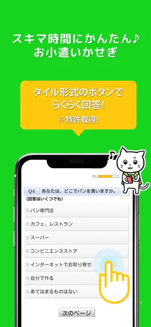 スキマ時間でサクッとお小遣いがたまるアンケートアプリ!!