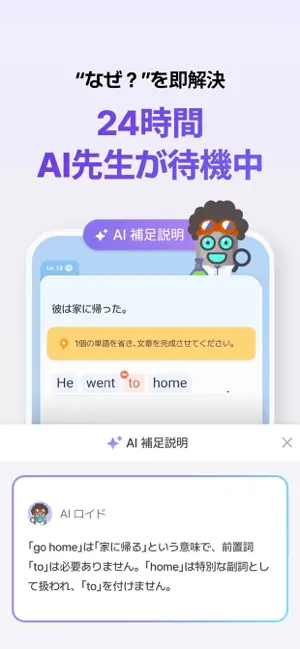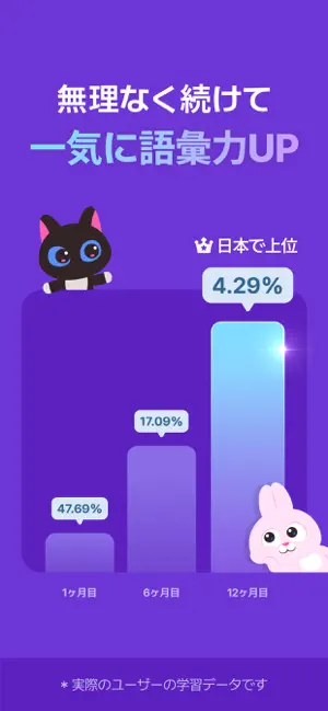 □■継続を助ける仕組み□■ ◆学習リマインド通知 ◆学習データの週・月単位での可視化(語彙力や正答率の推移) ◆連続学習日数の記録 ◆世界中のユーザーと競えるリーグ戦 → 「やめたくない心理」を刺激し、英語勉強の習慣化を支援