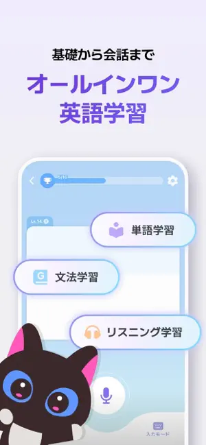 Epopは、英単語・リスニング・英文法を中心に、 英会話・スピーキング・ビジネス英語・TOEIC・英検対策・旅行英語まで網羅する オールインワン英語学習アプリです。