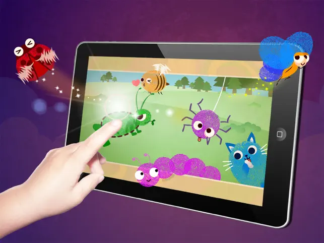 楽しくタッチで遊べる知育アプリです。何気なく画面にタッチすると、動物・昆虫・風船・木の葉・魚・カニなどの絵ができました。見てみて!キャラクターたちが歌やダンスのパフォーマンスを披露してくれます。指紋で完成した絵を眺めているだけで楽しい気持ちになりますね。「今日は何を描こうかな?」ぜひ、親子一緒にお絵描きアプリで遊んでみましょう。手指を使う遊びでお子様の手と目の協調性を鍛えられます。