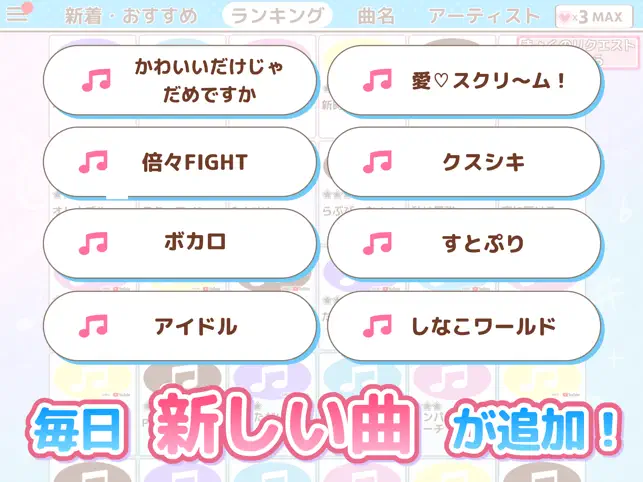 曲の難易度もちょうどいいし曲追加早くて飽きない!本当運営さん感謝感謝です✨