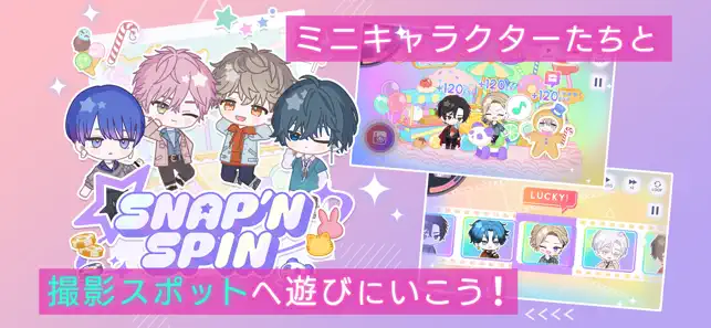 ■SNAP'N SPIN■ 回転するリールをタップして、スタッフたちのいる撮影スポットへ遊びにいこう。 シャッターボタンでスナップを撮ると、彼らの意外な一面を知れるかも……?