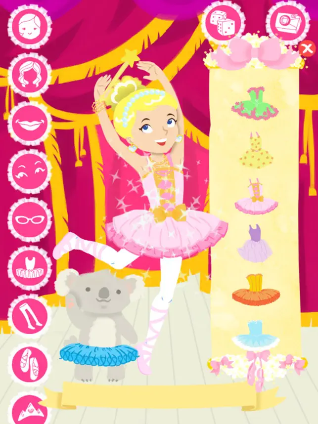 もちろんバレリーナのペットもありますよ、子猫やコアラなど! そしていろいろなシアターも選択できますよ、お城、モダンのスタジオスタイル、雪のワンダーランド、静寂な森、はたまたすばらしい春のフラワーガーデンなど。