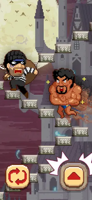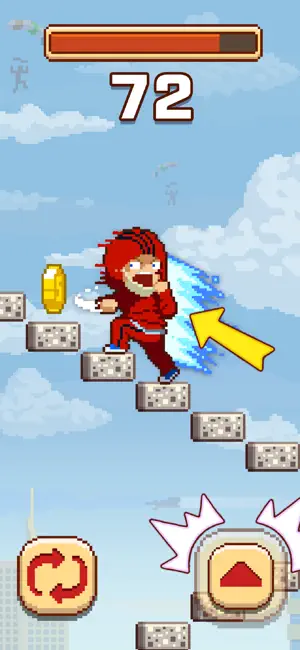 ボタンを押すだけで階段を上がる単純だが中毒性の強いアクションアーケードゲームです!
