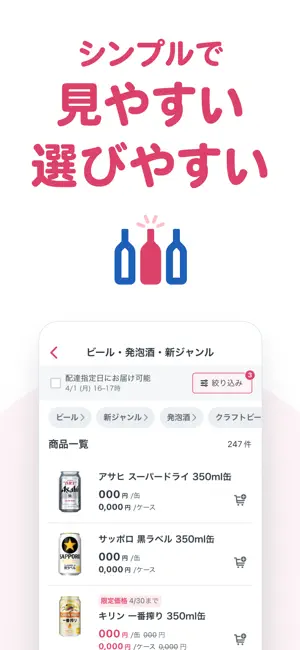 【カクヤスアプリはシンプルで、見やすく、選びやすい!】