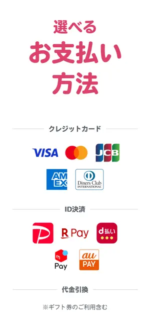 PayPay、楽天ペイ、d払い、メルペイ、au PAY、クレジットカード支払い、代金引換(現金・ビール券等)
