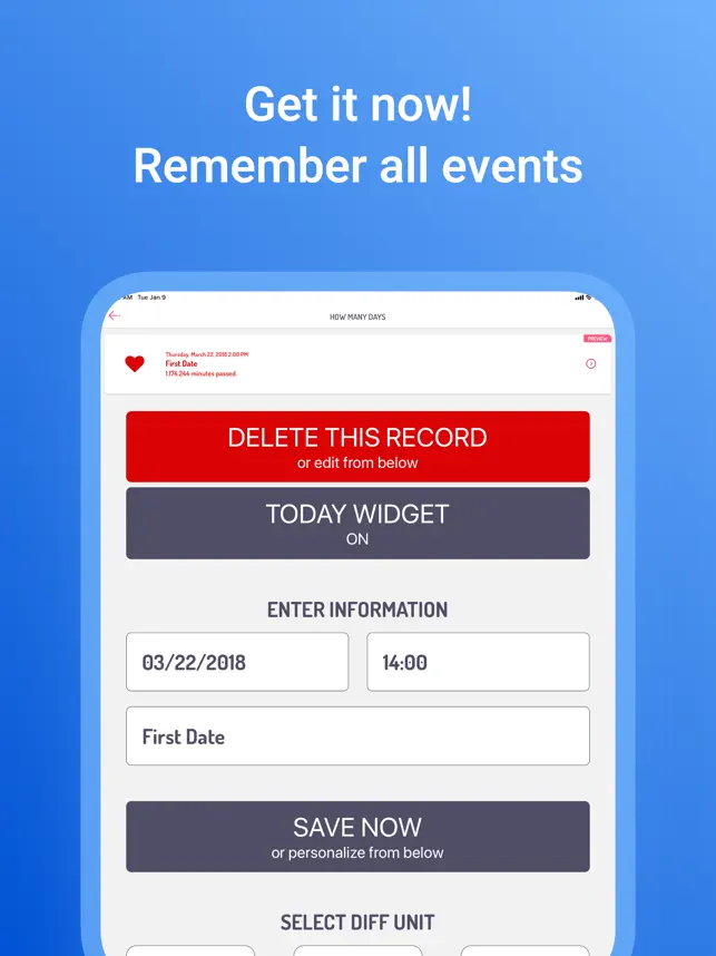 Add beautiful home screen widgets to see your upcoming events at a glance. With its clean design and intuitive interface, managing time has never been easier. Perfect for tracking life goals, milestones, and memorable occasions.
