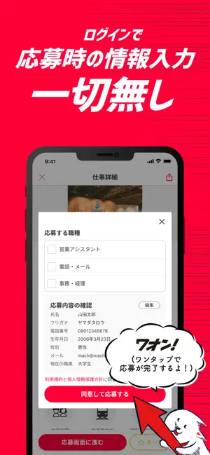 会員登録で応募時の情報入力をスキップ&ワンタップ応募可能!