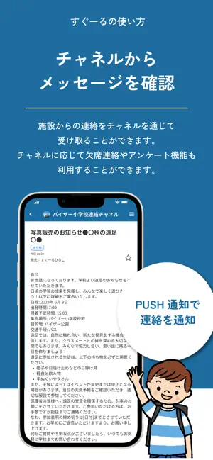 け取ることができます。お子様が通っている学校のチャネル、お住まいの地域のチャネ