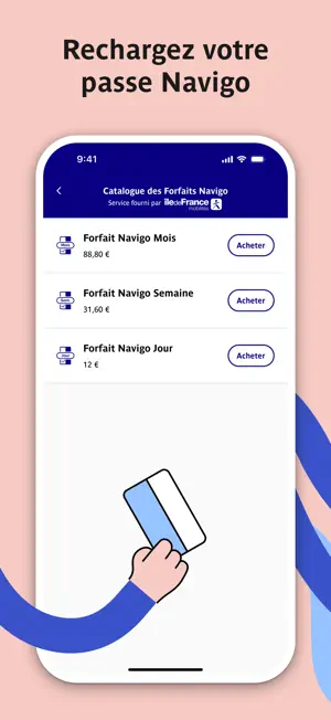 Fini les files d’attente ! Achetez les titres suivants dans l’application et retrouvez-les directement dans votre iPhone ou sur votre passe Navigo :